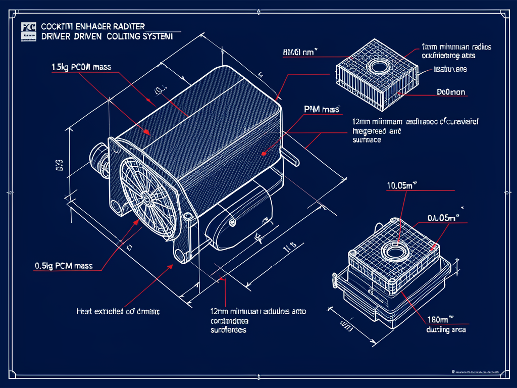 The thermal exchange surface area of the PCM heat exchanger is approximately 0.05 m9, which is compact relative to the cockpit volume but optimized for high heat transfer rates. This surface area is roughly equivalent to the frontal exposure of a driver cooling duct and is carefully balanced between space constraints and thermal requirements.